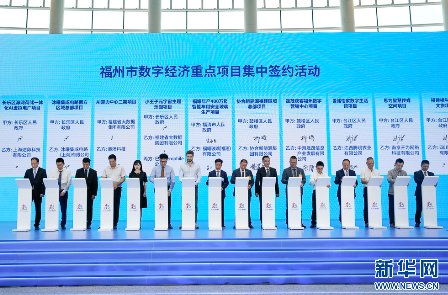 当天,福州市共梳理精选了32个重点项目在现场进行集中签约,总投资594亿元,包括AI算力中心二期、氢能算力中心、小王子元宇宙主题乐园等一批大数据项目;福耀年产400万套智能车用安全玻璃、新榕臻钢化玻璃数控制造等一批智能制造项目等。这些项目的签约落地,为福州市打响数字福州品牌,打造“数字应用第一城”注入新活力、增添新动能。