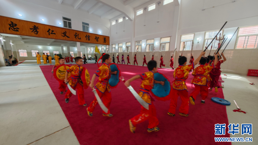 孩子们正在操演宋江阵。新华网 刘默涵 摄