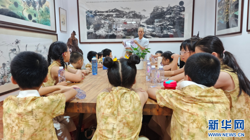 厦门市翔安区萃英书院里,孩子们跟随老师的教导,学习书法与国画。新华网 刘默涵 摄