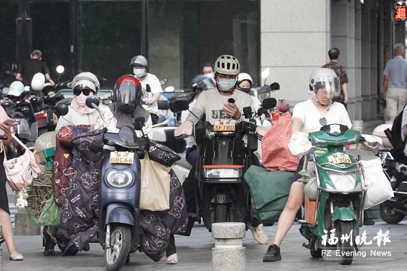 昨日的福州街头,市民“全副武装”躲避太阳暴晒。