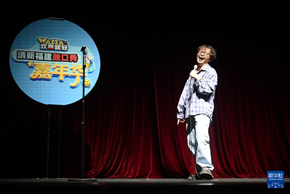 10月25日,来自福建省实验闽剧院的演员许惠銮在表演脱口秀。新华社记者 林善传 摄