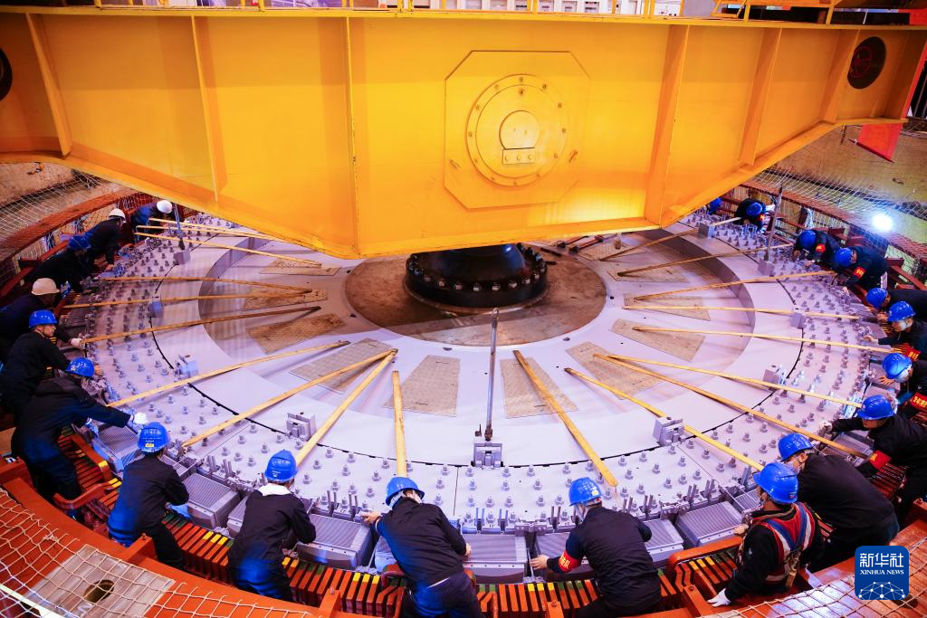 这是11月30日在检修现场拍摄的5号机组发电机坑。新华社记者 周义 摄