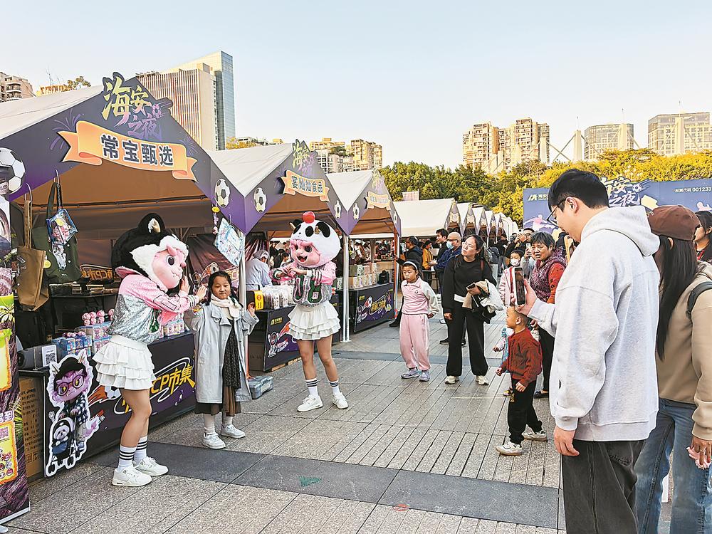 市民在“常莆CP”市集前合影。陈汉儿 摄