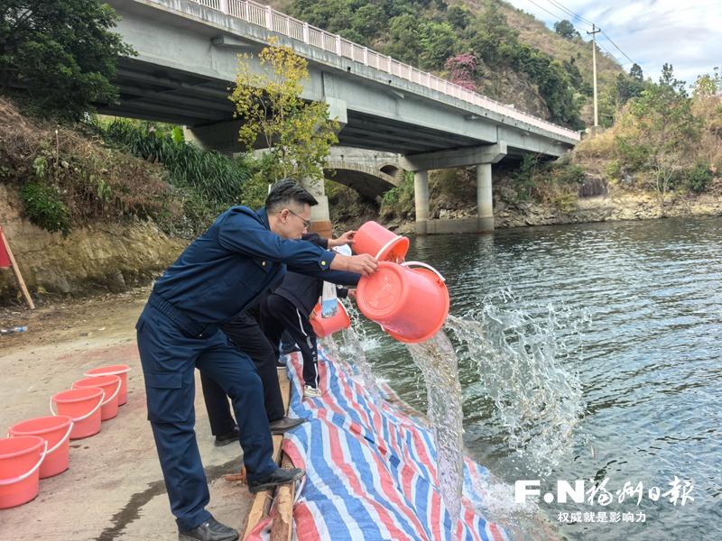 放流现场,载满鱼苗的货车缓缓抵达码头,工作人员小心翼翼地将鱼苗分装至小桶中。随着一桶桶鱼苗被倾倒入江中,一尾尾鲜活的香鱼与翘嘴鲌如灵动的水中精灵,迅速游向雄江深处,为闽江注入新的生机。