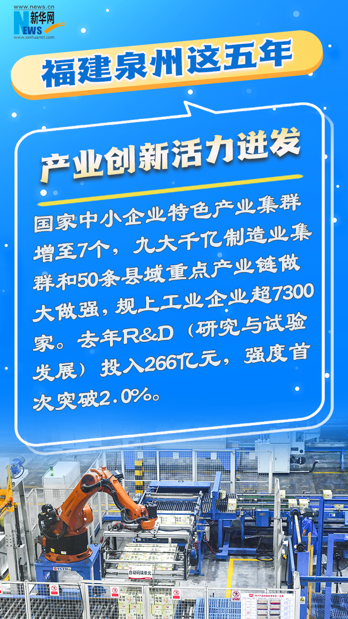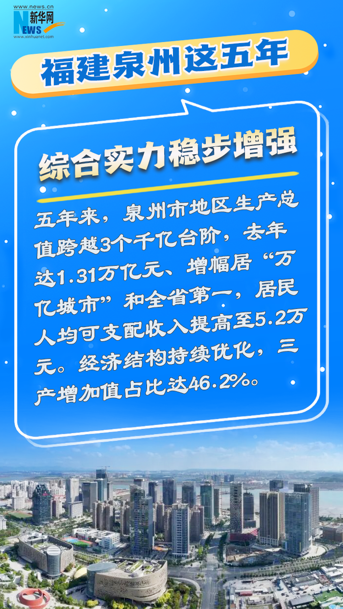 新华网福州12月19日电(蒋巧玲 连雨欣)GDP连跨3个千亿台阶、R&D(研究与试验发展)投入首次突破2.0%、年度游客量突破1亿人次……“十四五”时期,泉州传承弘扬、创新发展“晋江经验”,大拼经济、大抓发展,海丝名城、智造强市、品质泉州建设取得新的重大成就。18日,福建省委宣传部召开“在中国式现代化建设中奋勇争先 奋力谱写新征程新福建建设新篇章”系列主题新闻发布会(第五场),介绍并发布泉州市“十四五”时期经济社会发展总体情况。