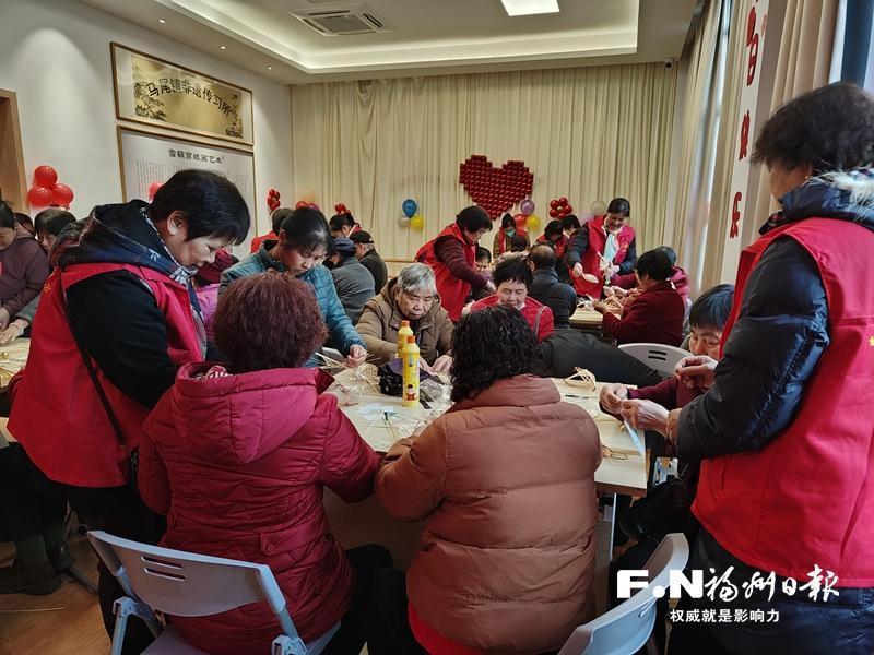 在马尾镇社区长者保健生日会上,志愿者与老人一起制作手工船。(受访者供图)
