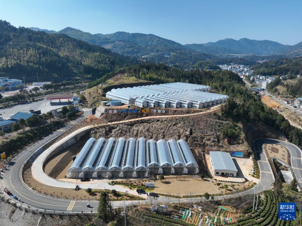 这是1月15日拍摄的周宁县七步镇花卉企业大棚(无人机照片)。新华社记者 姜克红 摄