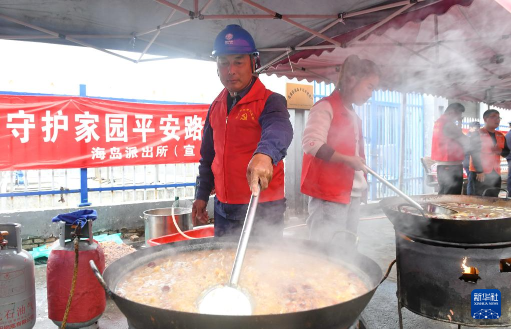1月26日,刘江平和乡亲们一起捐钱捐物参加“海岛寻年味 腊八迎福来”海岛乡迎新春活动。新华社记者 林善传 摄