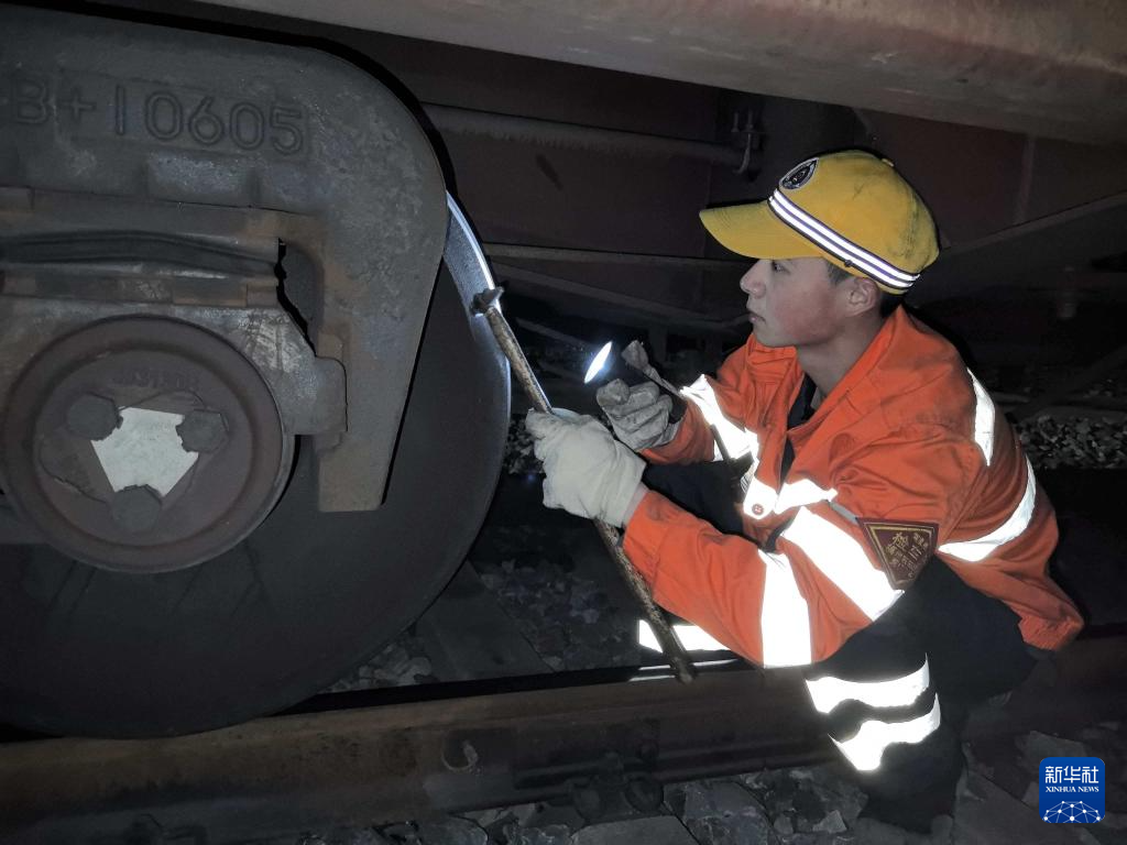 虽然任务繁重,但是王奇德和工友们的作业一丝不苟。王奇德告诉记者,今年春运期间的中欧班列上,服装、鞋帽、日用百货占比较大。这类货物对运输平稳性要求更高,每一对车轮检车员都得细细检查、确认无误。