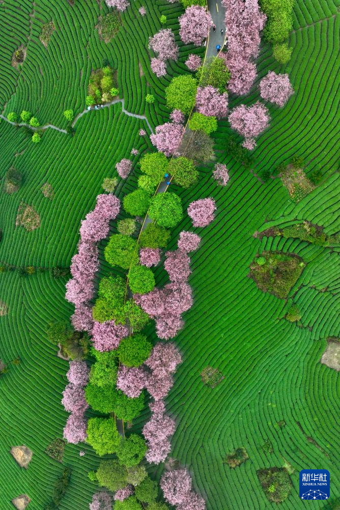 这是2月28日拍摄的福建省漳平市永福镇台品樱花茶园美景(无人机照片)。新华社记者 姜克红 摄