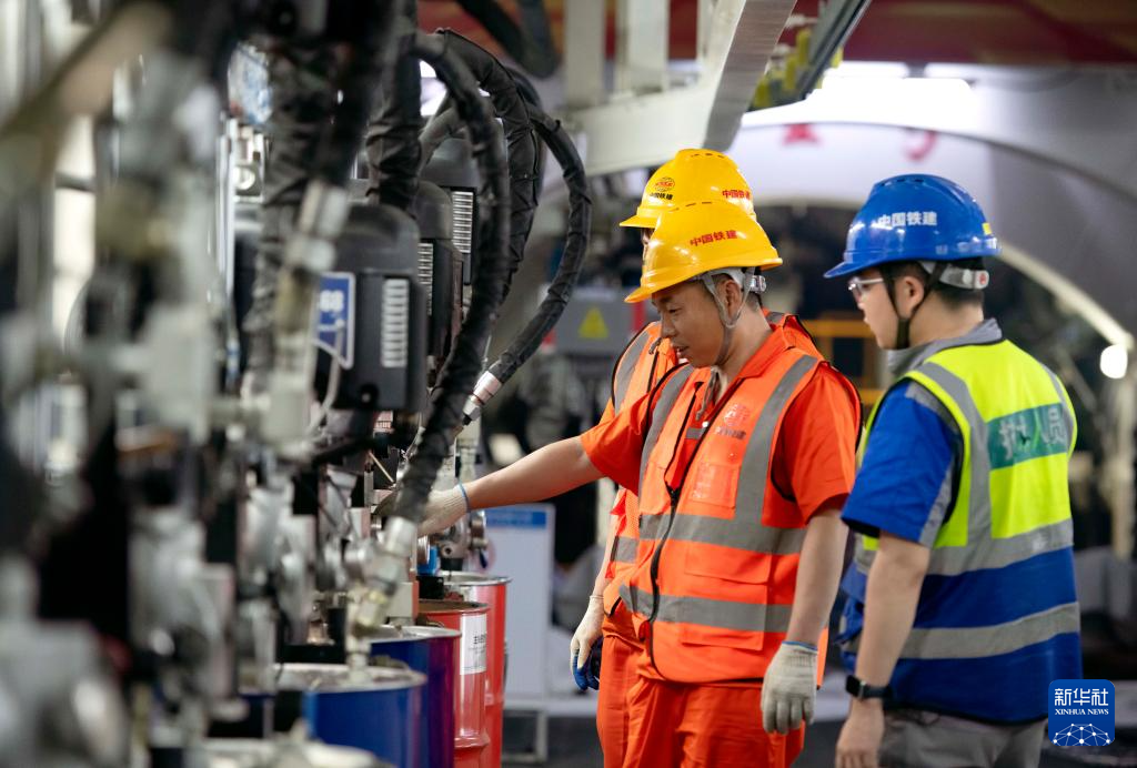 3月4日,中铁十四局工程作业人员在对盾构机后配套设备进行日常巡检。新华社记者 魏培全 摄